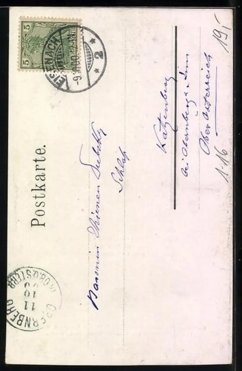 alte Ansichtskarte, gelaufen 1900, Stempelspur, guter Zustand