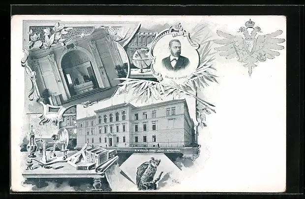 AK Portrait Richard Trampler, K. K. Kaiser Franz Josef-Realschule, Festsaal