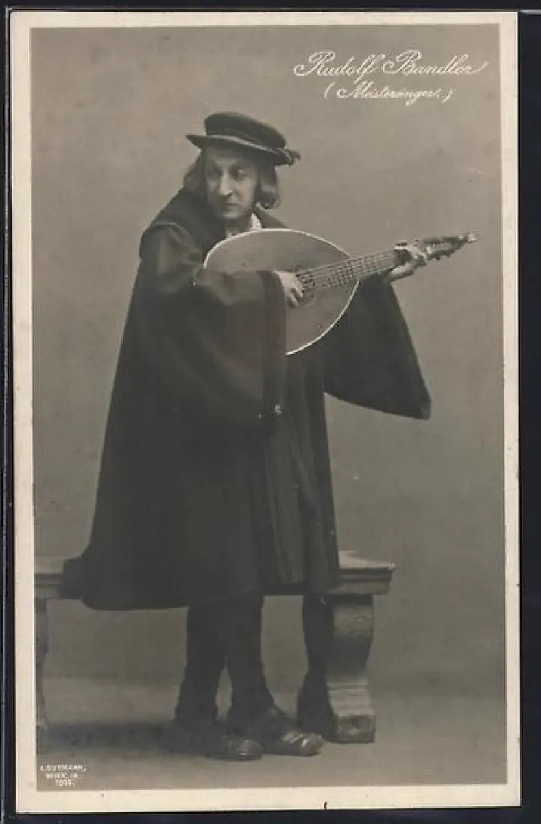 AK Portrait Rudolf Bandler als Meistersinger mit Laute, Opernsänger