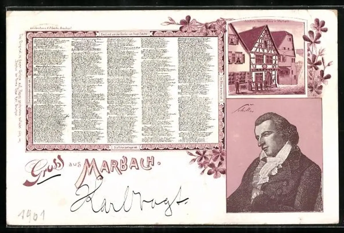 AK Portrait Schillers und Schillers Geburtshaus in Marbach