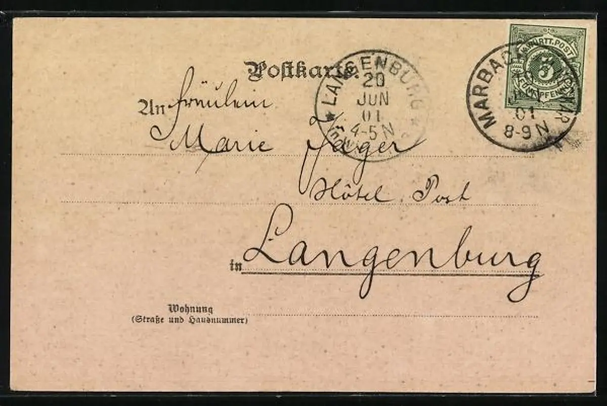 alte Ansichtskarte, gelaufen 1901, Stempelspur, Eckknicke oben, Eckknick links unten, sonst guter Zustand