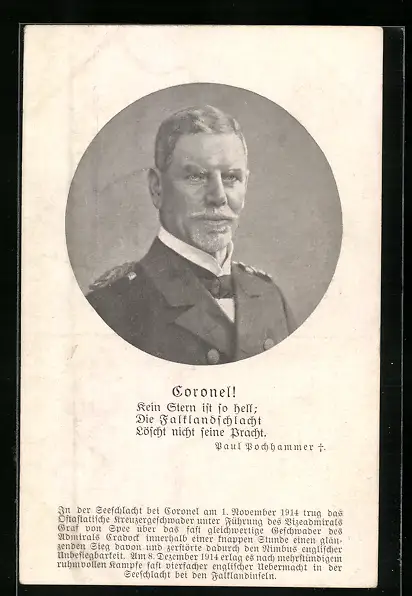 AK Portrait Vizeadmiral Graf von Spee, Seeschlacht bei Coronel