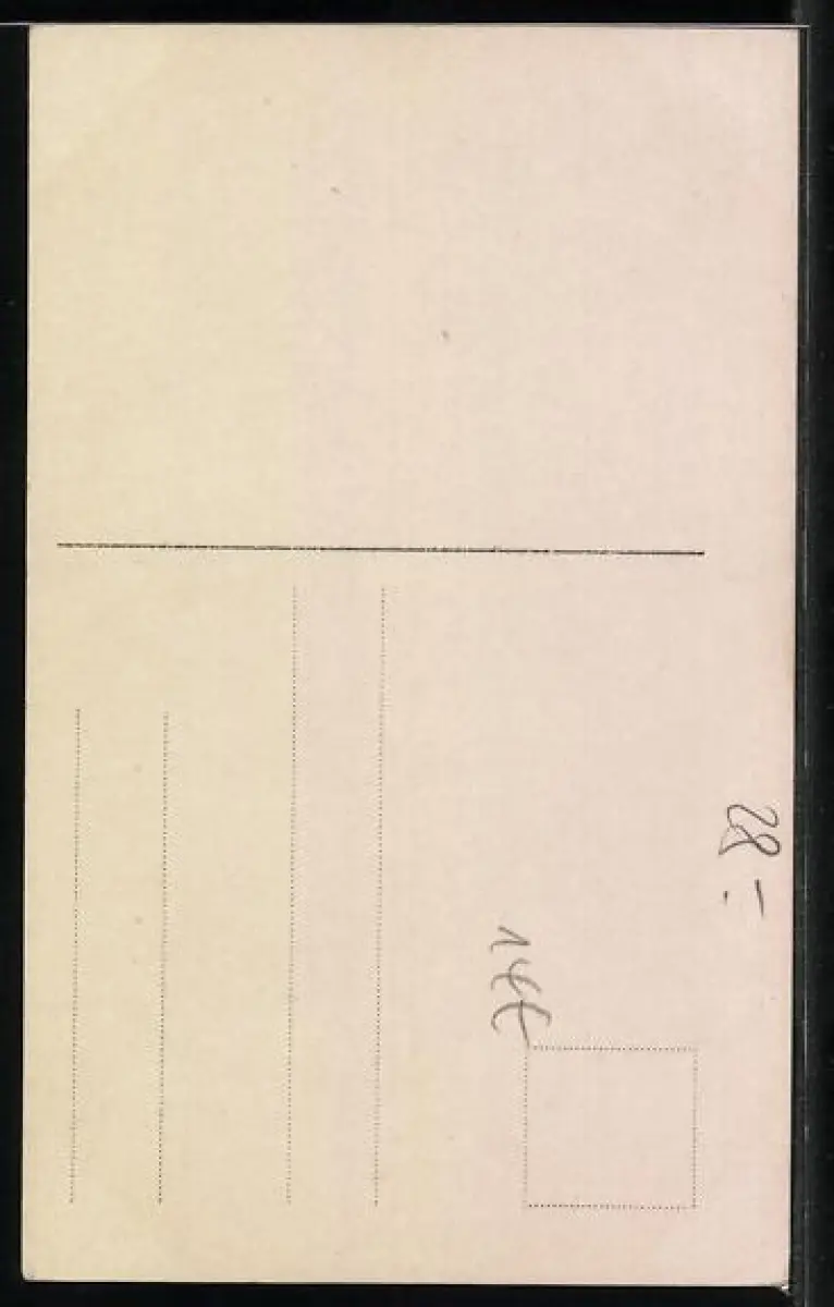 Personenbezogene Daten auf der Rückseite der Karte wurden durch blauen Textmarker unkenntlich gemacht. Die blauen Stellen sind auf die Vorderseite durchgeweicht und wirken sich negativ auf das Postkartenfoto aus