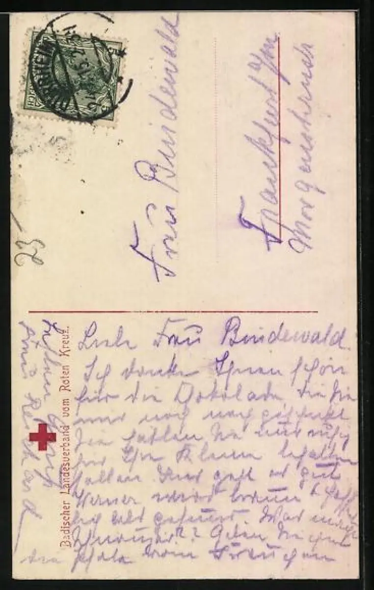 gelaufen 1915, Eckknick oben li., guter Zustand