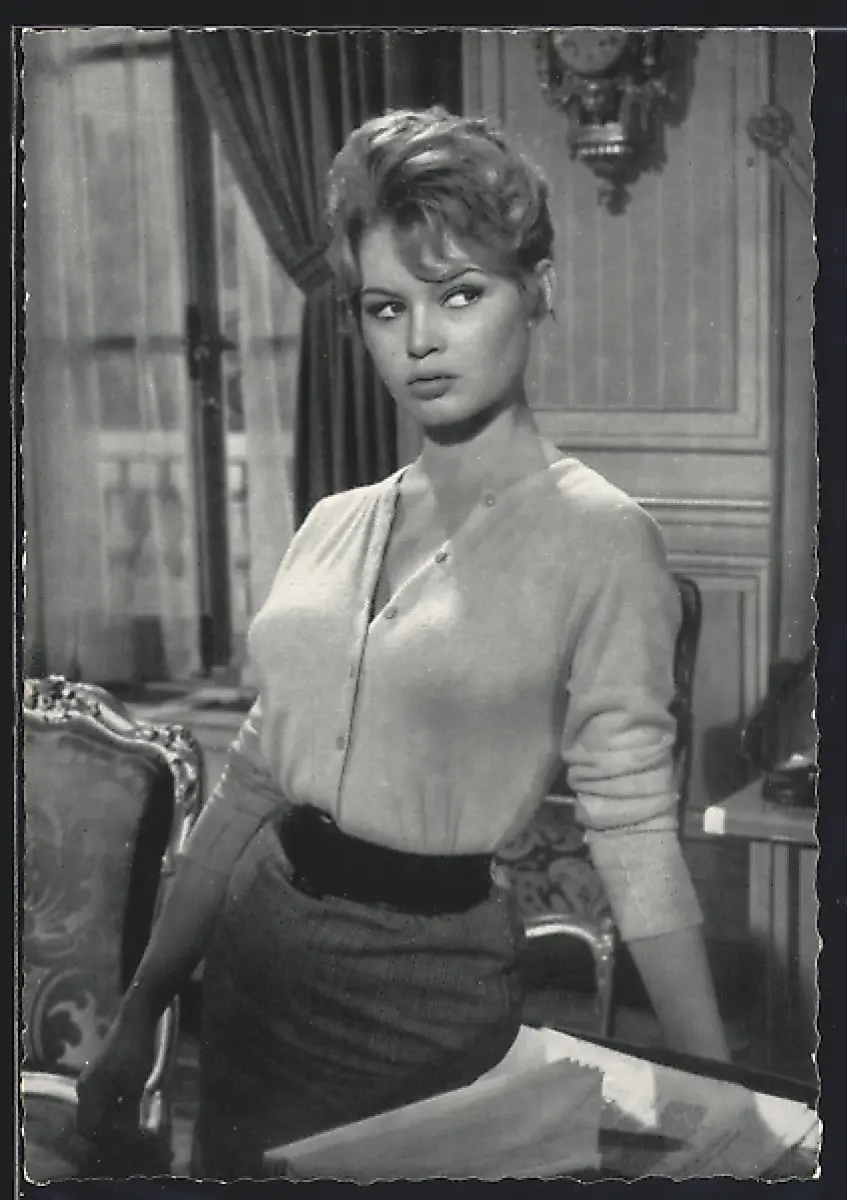AK Portrait der Schauspielerin Brigitte Bardot mit Hochsteckfrisur