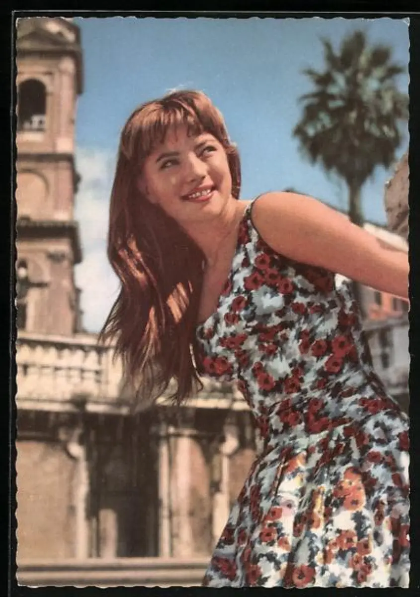 AK Portrait der Schauspielerin Karin Baal in Sommerkleid