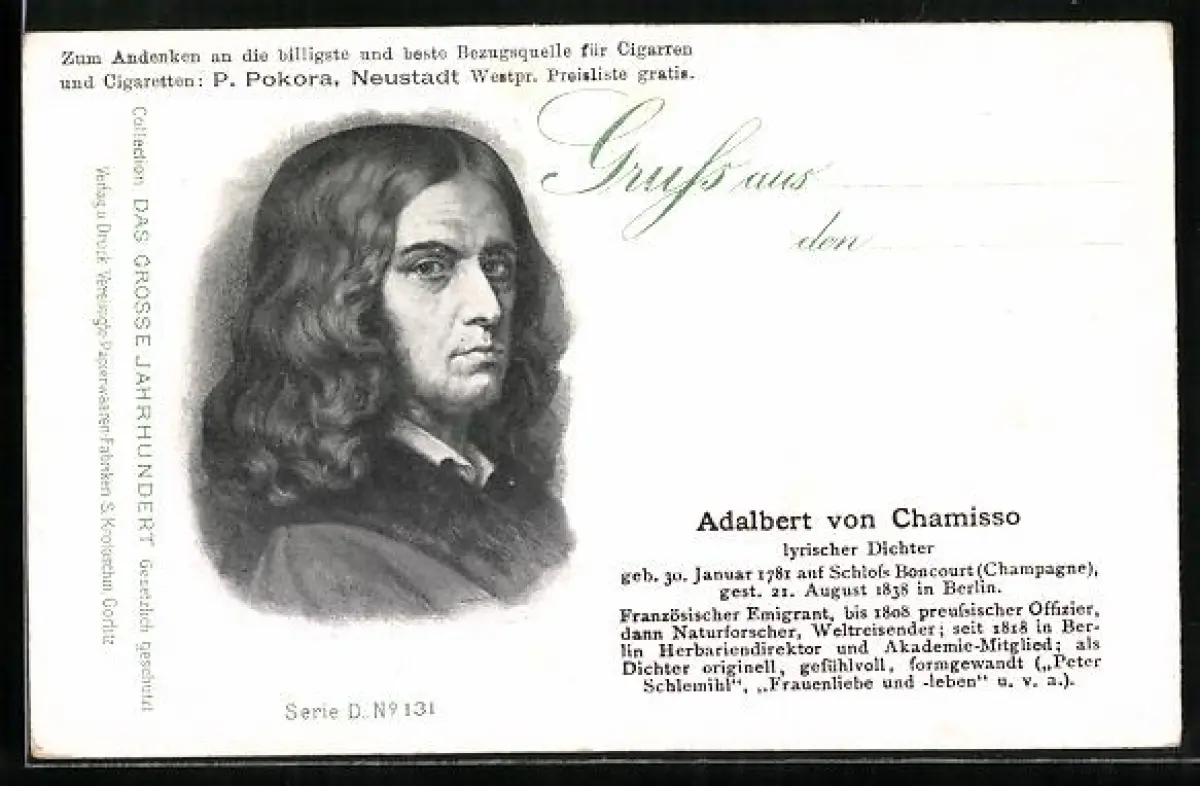 AK Portrait des Adalbert von Chamisso, lyrischer Dichter
