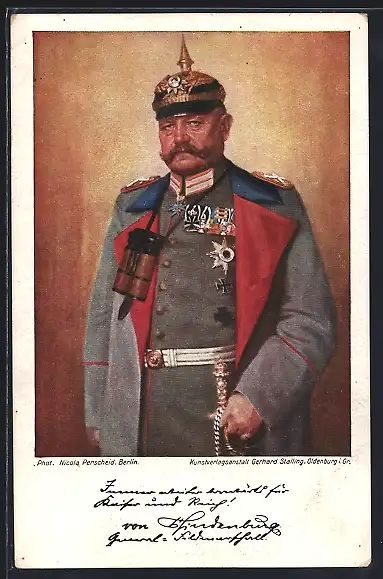 AK Portrait von Generalfeldmarschall Paul von Hindenburg in Uniform m. Eisernen Kreuz u. Pickelhaube