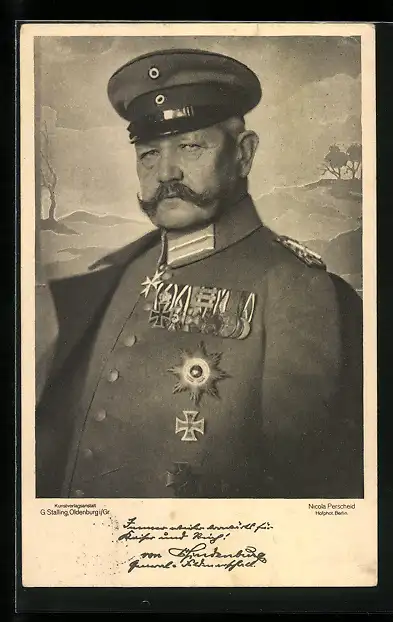 AK Portrait von Generalfeldmarschall Paul von Hindenburg in Uniform mit Mütze