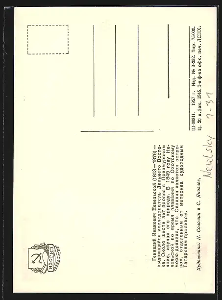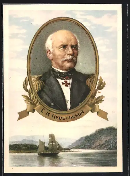AK Portrait von Nevelsky in Uferlandschaft mit Segelschiff
