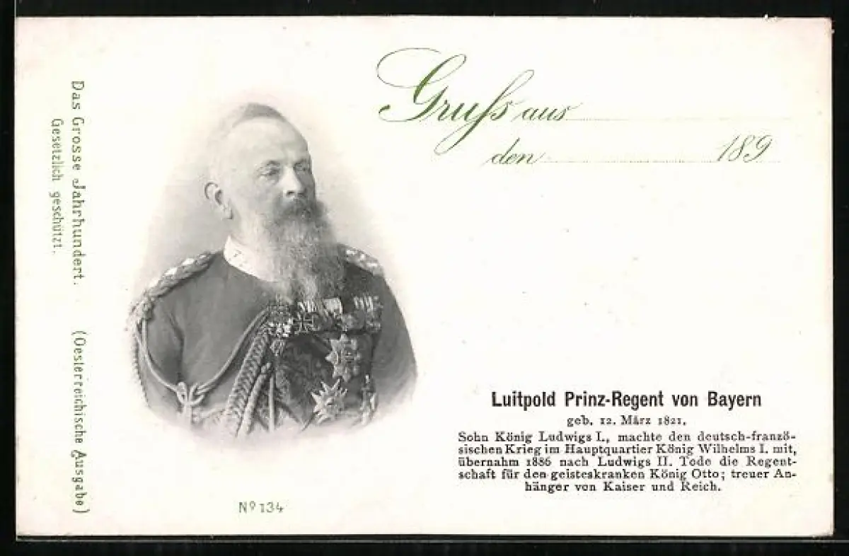 AK Portrait von Prinzregent Luitpold in Uniform mit Ordensspange