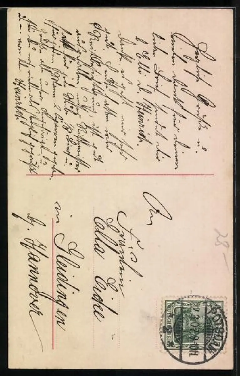 alte Ansichtskarte, gelaufen 1907, Stempelspur, guter Zustand