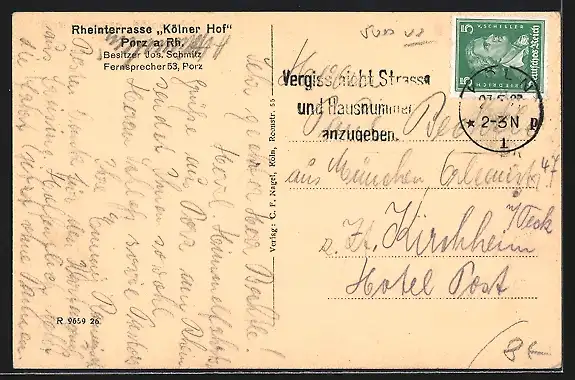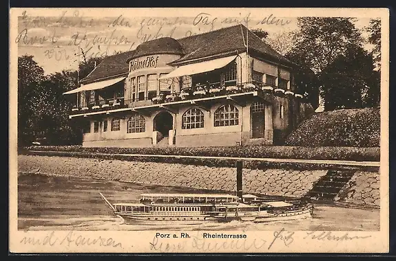 AK Porz, Cafe Kölner Hof, Rheinterrassen, Rheindampfer