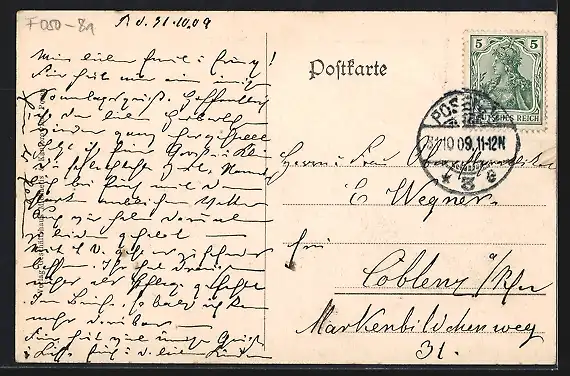 alte Ansichtskarte, gelaufen 1909, Stempelspur, guter Zustand