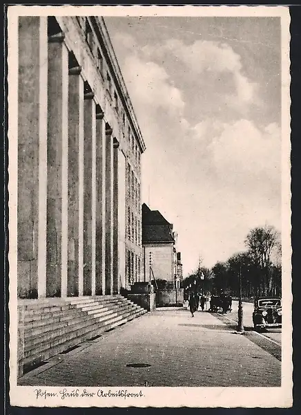 AK Posen, Haus der Arbeitsfront, Teilansicht mit Strasse