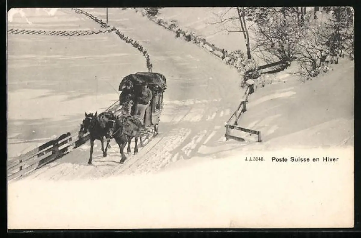 AK Poste Suisse em Hiver, Schweizer Post, Pferdeschlitten