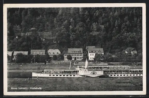 AK Postelwitz, Elbe-Dampfer Leipzig passiert den Ort