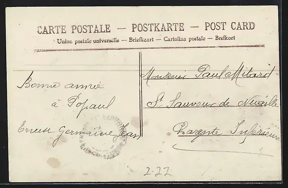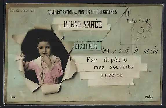 AK Postgeschichte, Administration des Postes Ettélégraphes-Par dépeche mes souhaits sincères