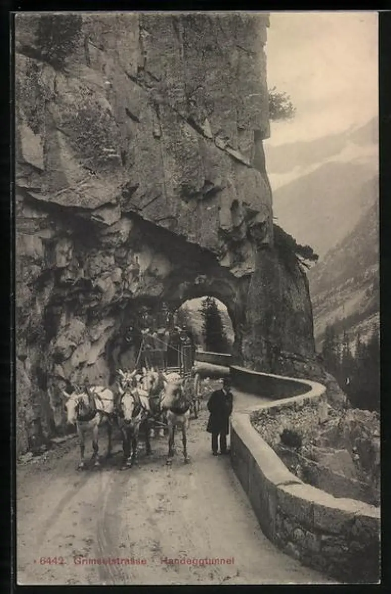 AK Postkutsche auf der Grimselstrasse am Handeggtunnel