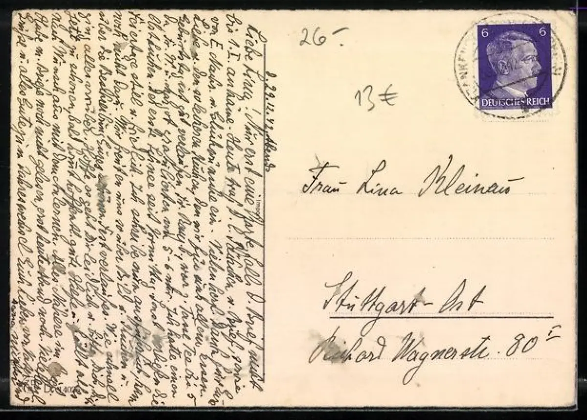 gelaufen 1942, Eckknick oben li., guter Zustand