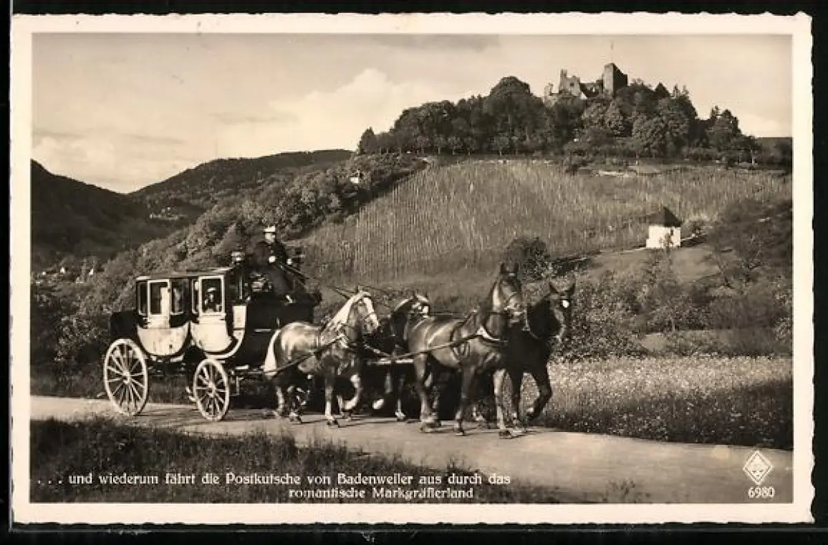 AK Postkutsche fährt von Badenweiler aus durch das romantische Markgräflerland