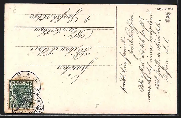 alte Ansichtskarte, gelaufen 1913, Stempelspur, guter Zustand