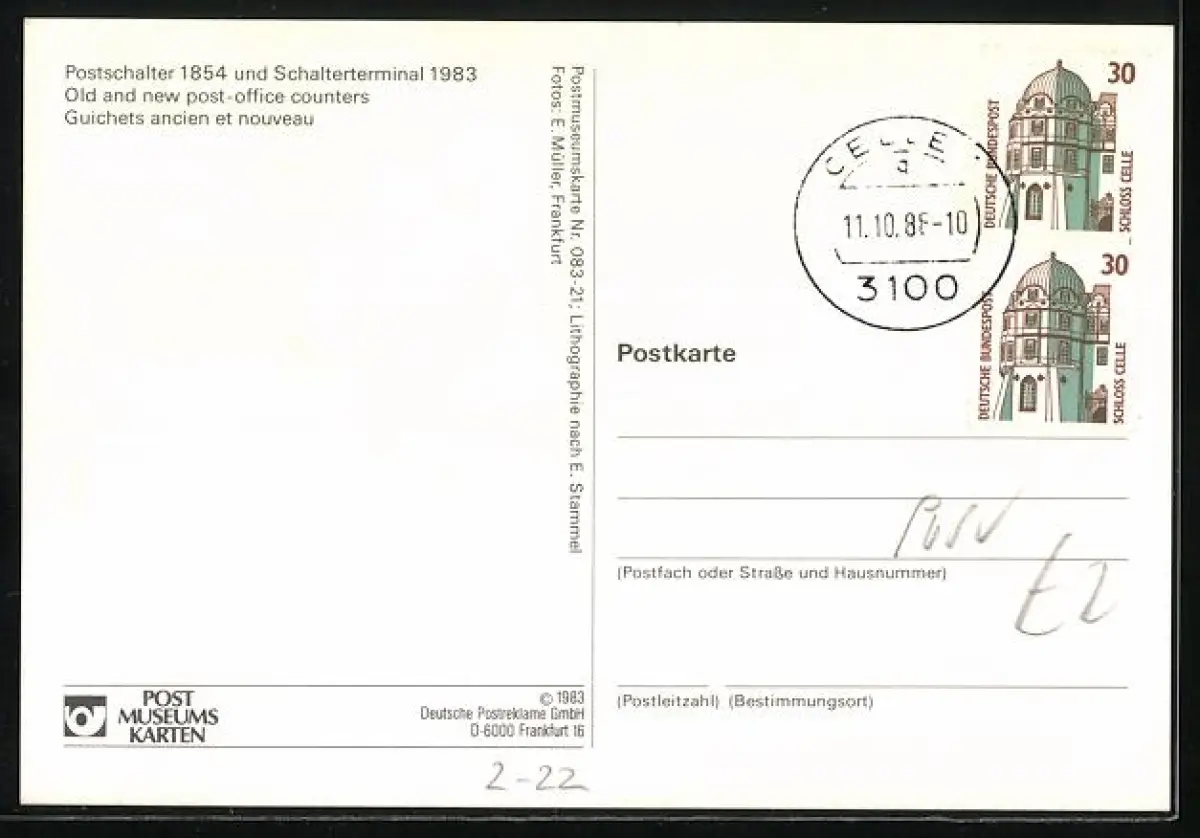 AK Postschalter 1854 und Schalterterminal 1983, Postgeschichte