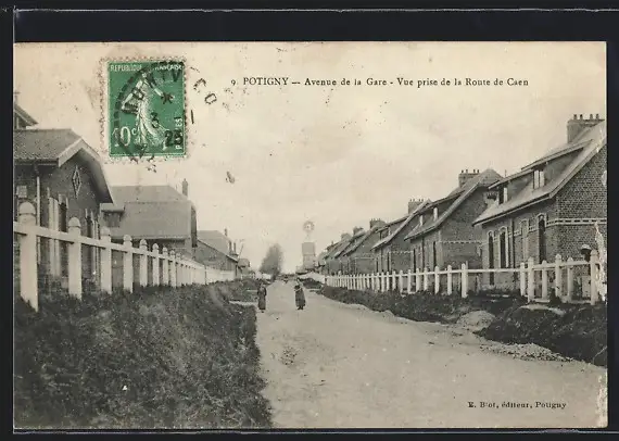 AK Potigny, Avenue de la Gare, Vue prise de la Route de Caen