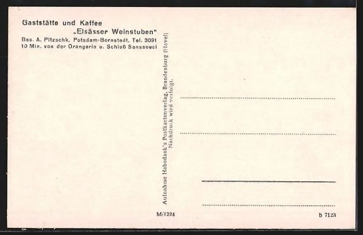 AK Potsdam-Bornstedt, Gaststätte u. Kaffee Elsässer Weinstuben