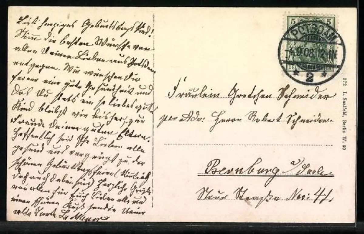 alte Ansichtskarte, gelaufen 1908, guter Zustand