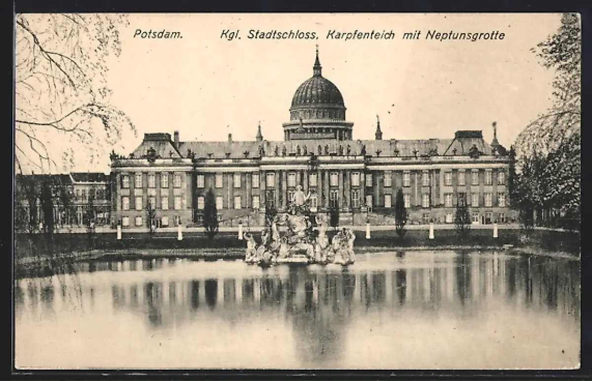 AK Potsdam, Kgl. Stadtschloss, Karpfenteich mit Neptunsgrotte
