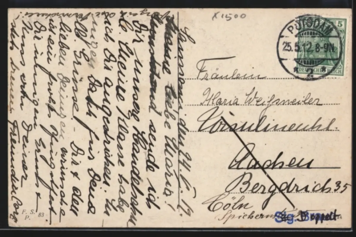 gelaufen 1912, Eckknick re. unten, Stempelspur, guter Zustand
