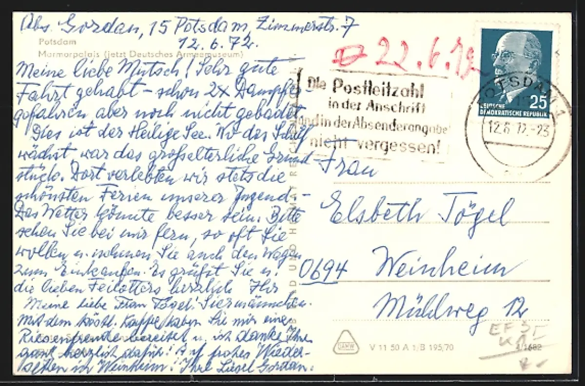 alte Ansichtskarte, gelaufen 1972, guter Zustand