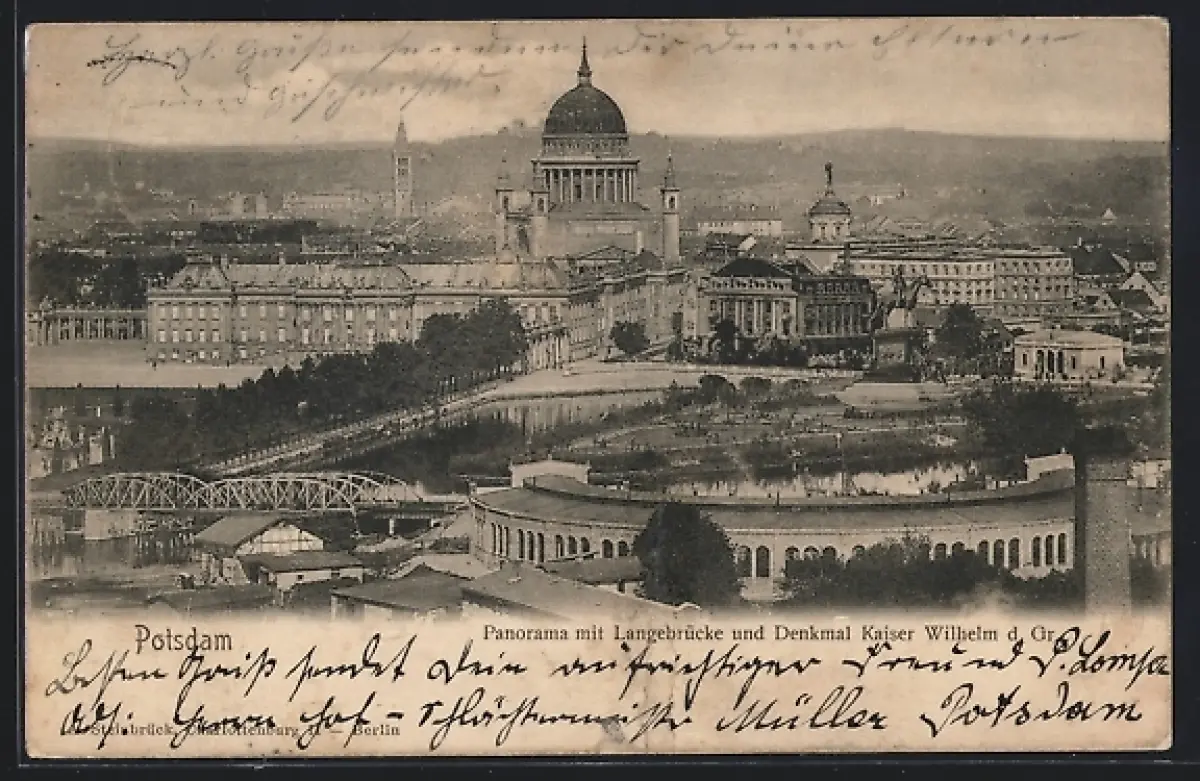 AK Potsdam, Panorama mit Langenbrücke und Denkmal Kaiser Wilhelm d. Gr