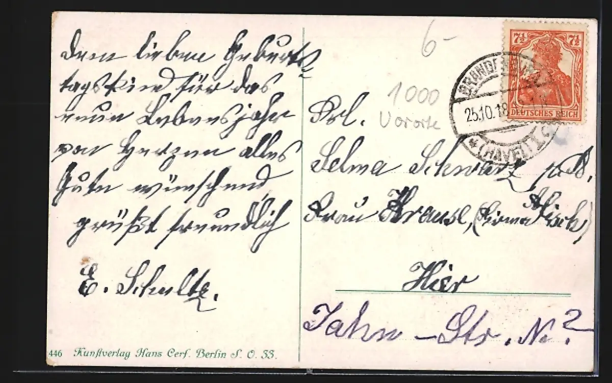 alte Ansichtskarte, gelaufen 1918, Abriebspur oben rechts, guter Zustand