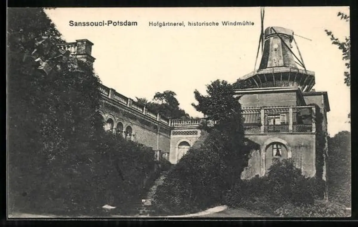 AK Potsdam, Sanssouci, Hofgärtnerei, historische Windmühle