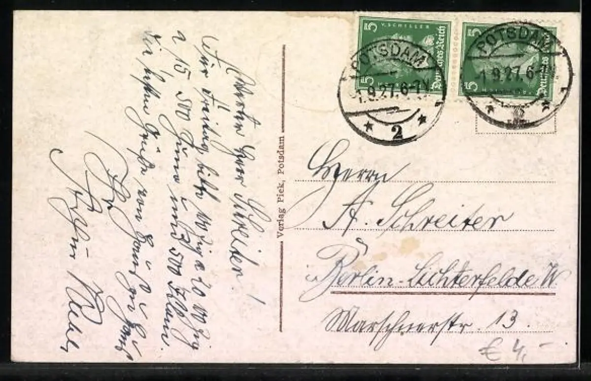 alte Ansichtskarte, gelaufen 1927, rückseitig Oberflächenschaden, guter Zustand