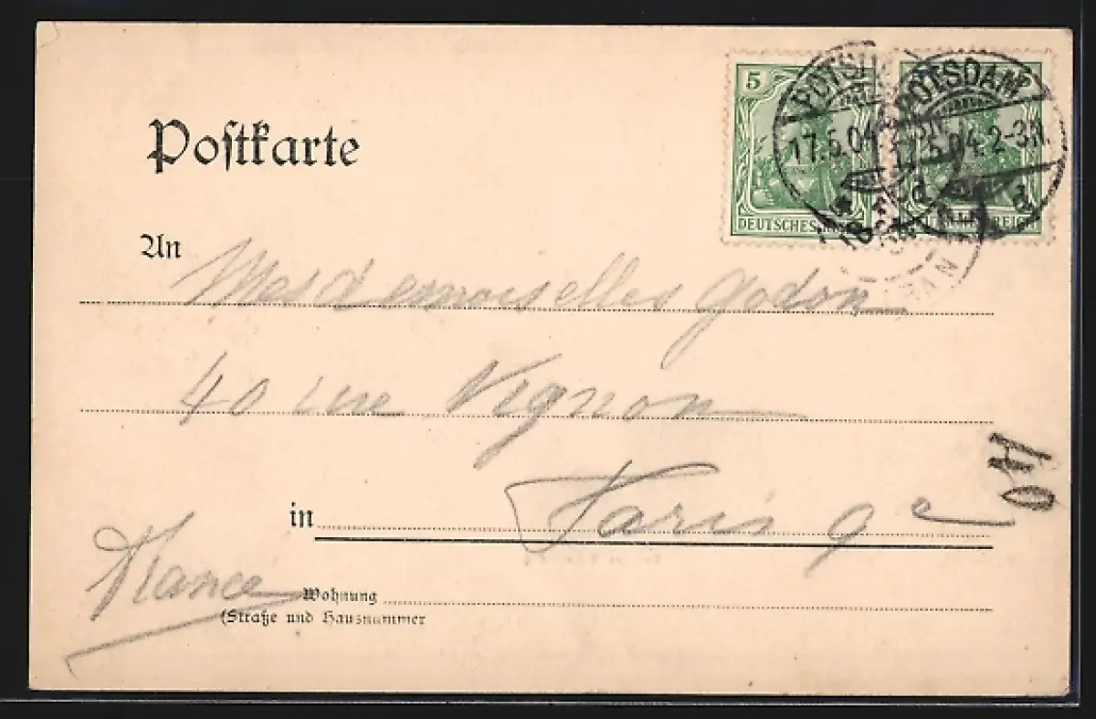 alte Ansichtskarte, gelaufen 1904, Bugspur oben links, guter Zustand