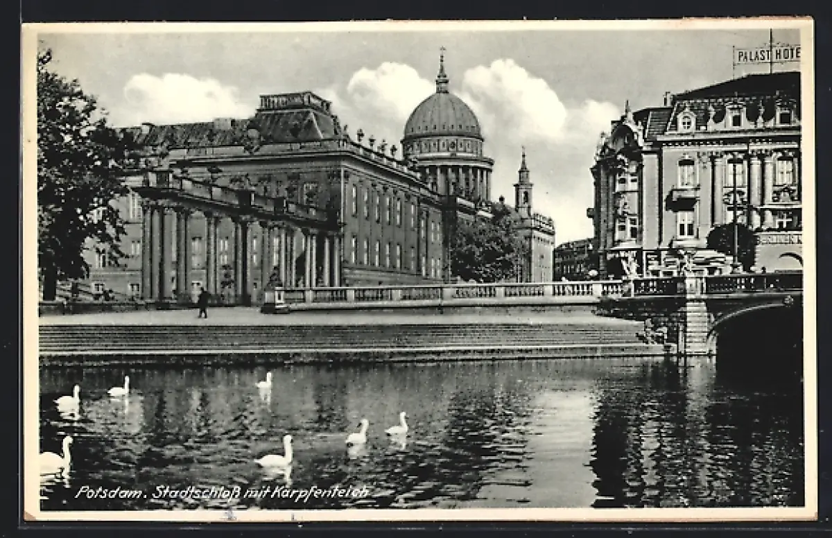 AK Potsdam, Stadtschloss mit Karpfenteich