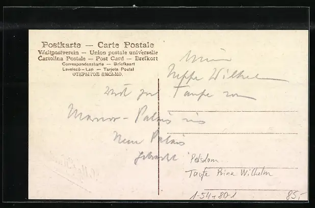 AK Potsdam, Taufe von Prinz Wilhelm, rückseitig Autograph Prinz August Wilhelm von Preussen