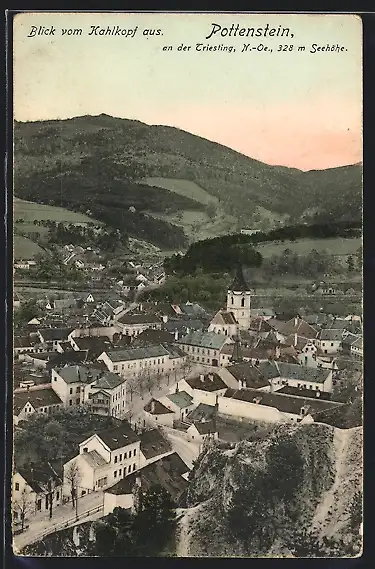 AK Pottenstein /Triesting, Teilansicht mit Fernblick aus der Vogelschau