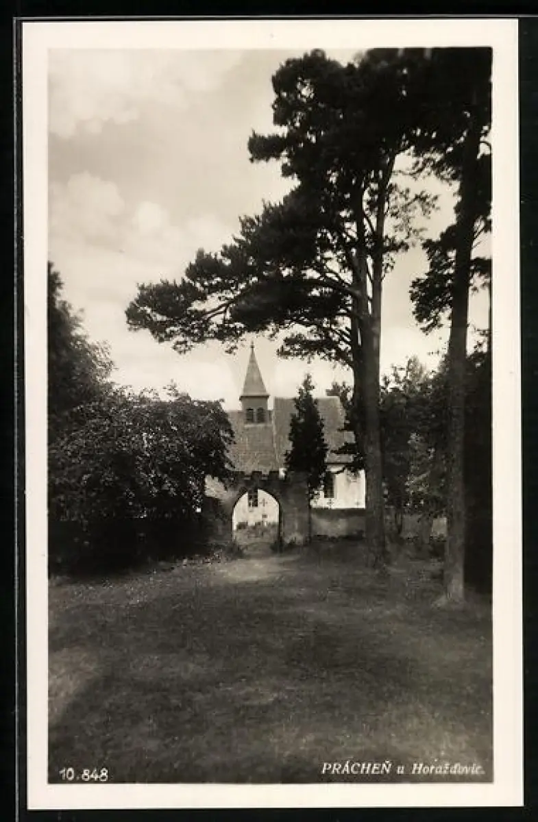 AK Práchen u Horazd`ovic, Ortspartie mit Tor
