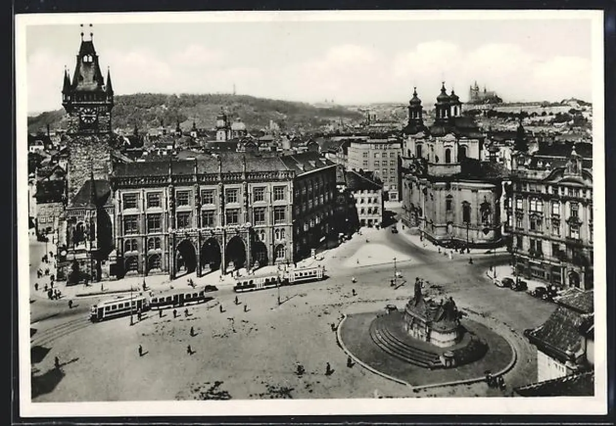 AK Prag, Altstädter Ring mit Strassenbahnen