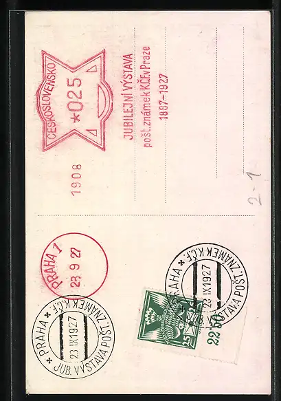 AK Prag, Jubiläumsausstellung von Postkarten 1927, Flugzeug & Kutsche