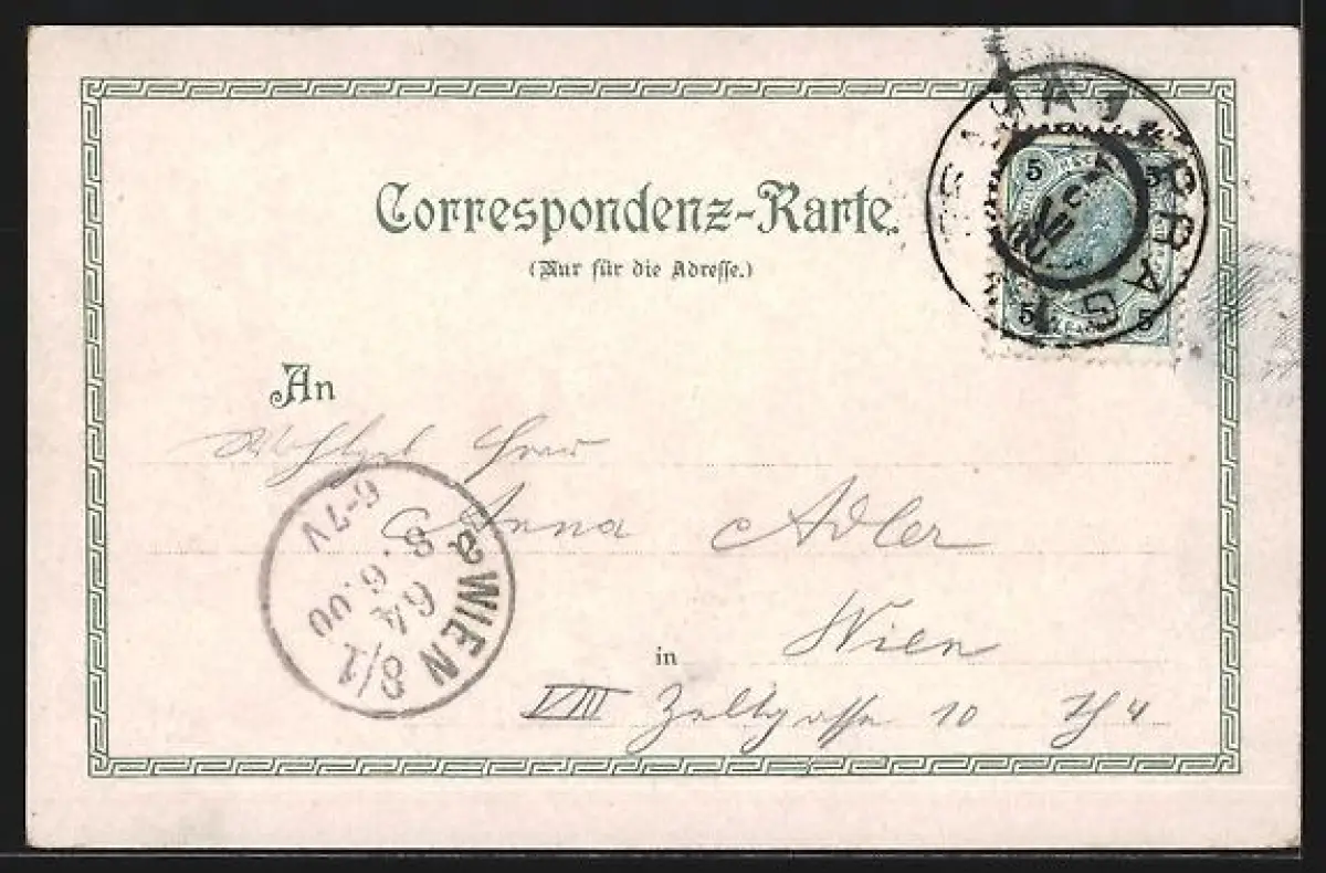 alte Ansichtskarte, gelaufen 1900, Stempelspur, guter Zustand