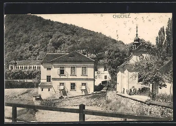AK Prag / Praha-Chuchle, Häuser und kleine Kirche