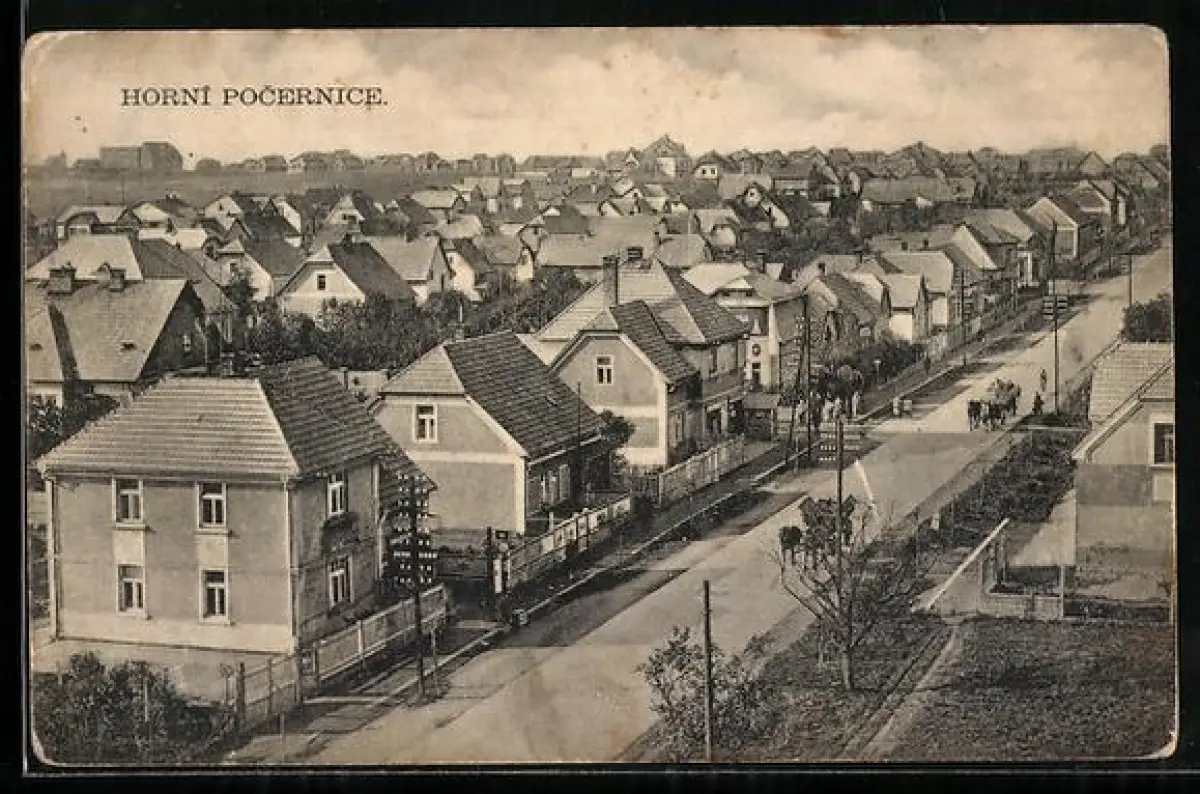 AK Prag / Praha-Horni Pocernice, Wohnhäuser an einer Strasse