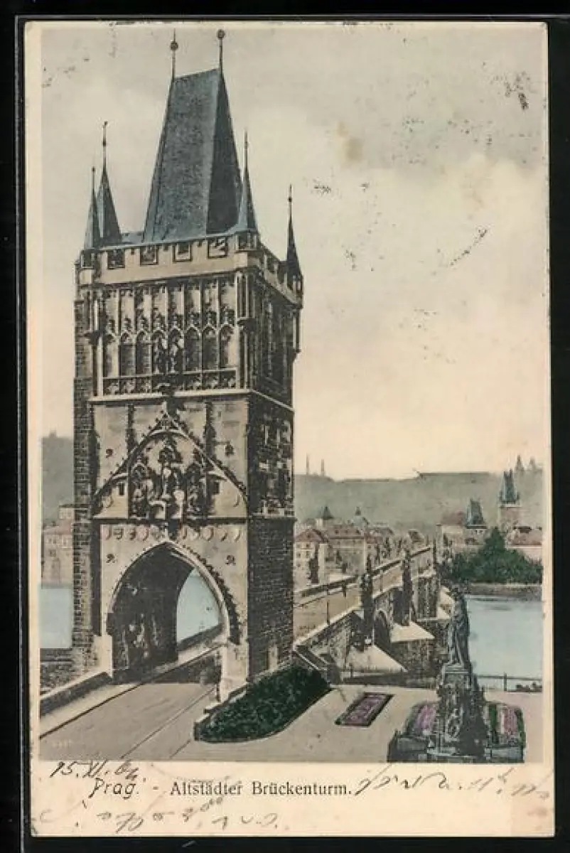 AK Prag / Praha, Karlsbrücke, Karluv most, Partie am Altstädter Brückenturm