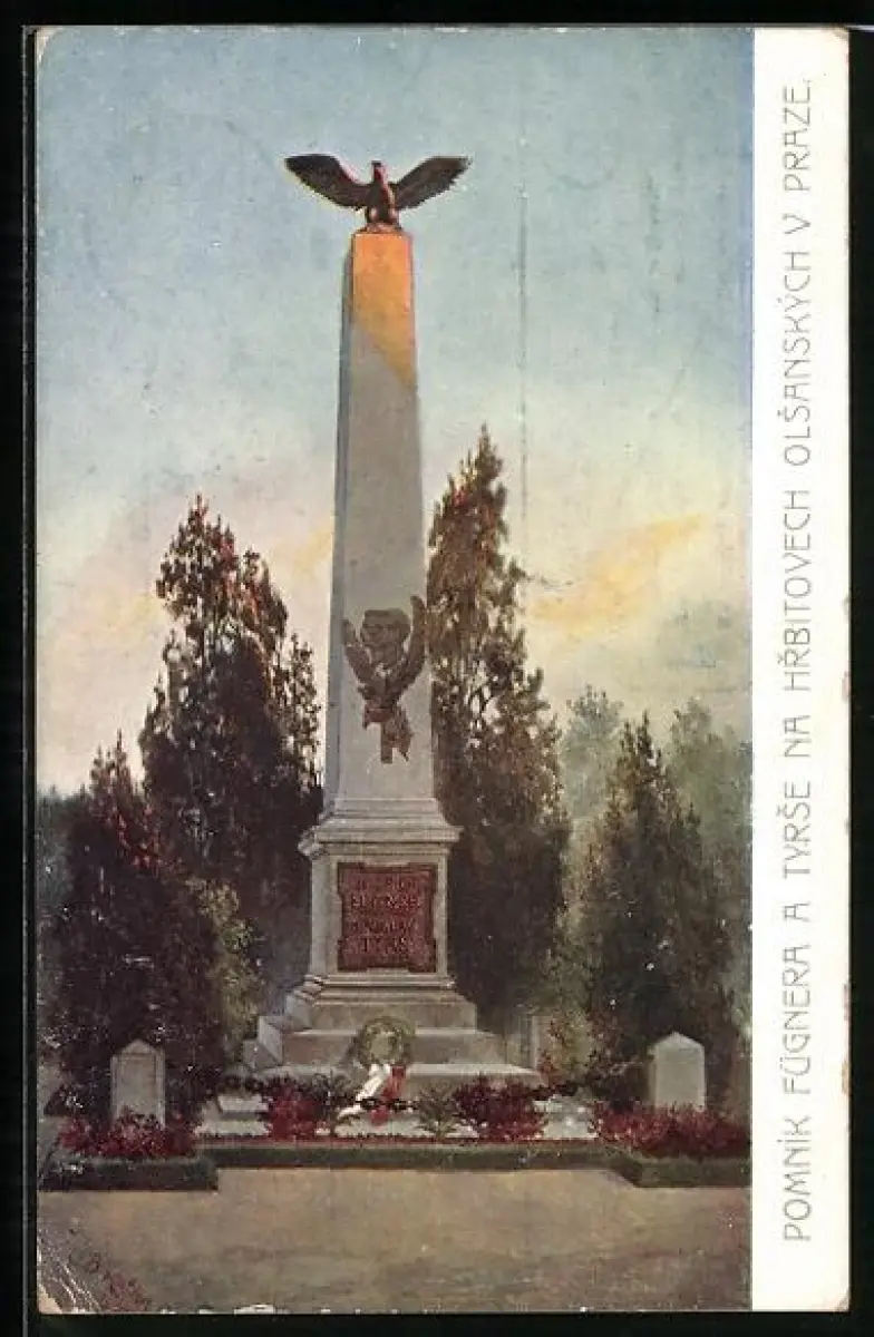 AK Prag / Praha, Pomnik Fügnera a Tyrse na Hrbitovech olsanskych