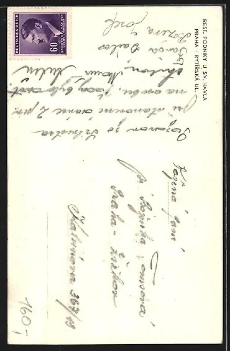AK Prag / Praha, Rest. Podniky u. Sv. Havla, Rytirska Ul.